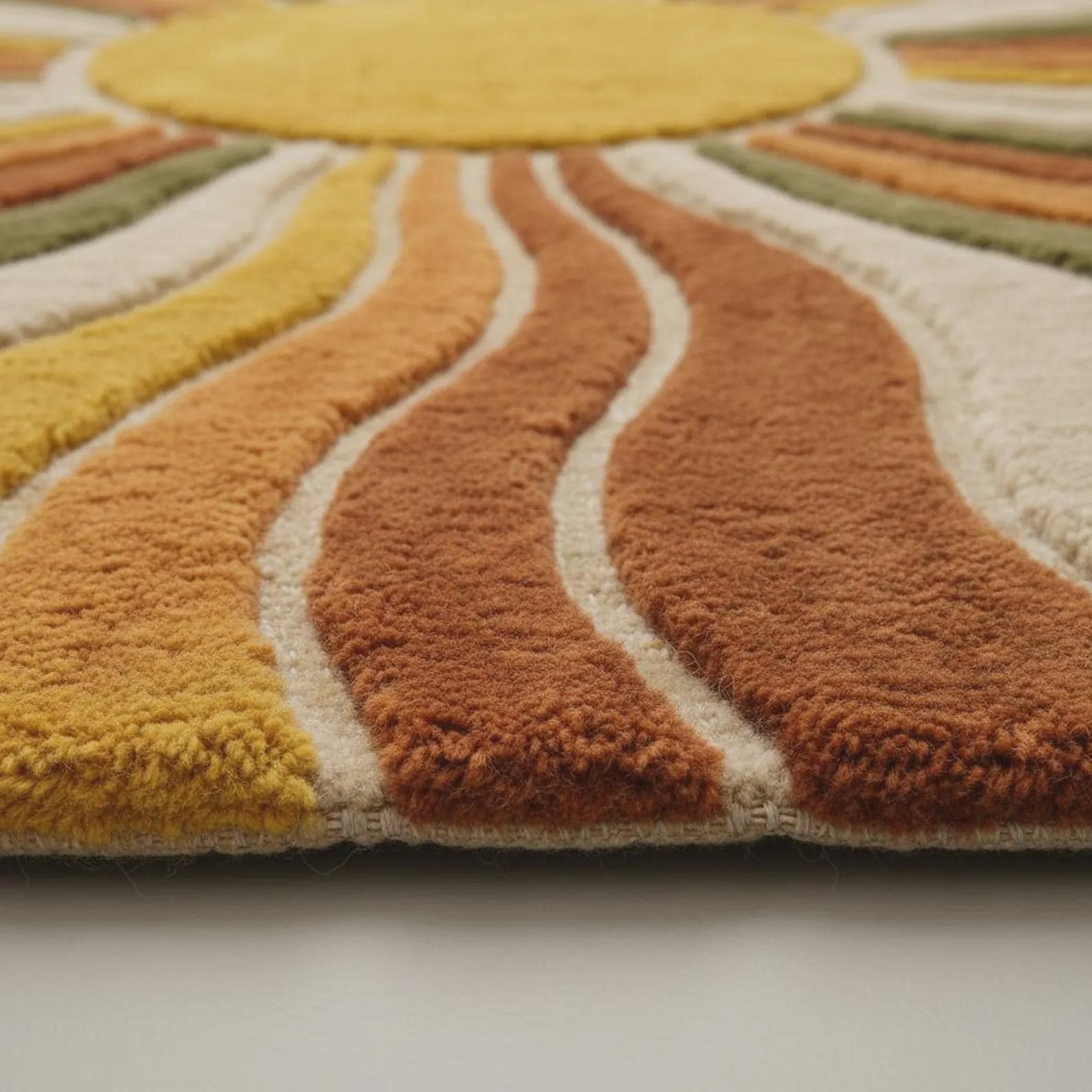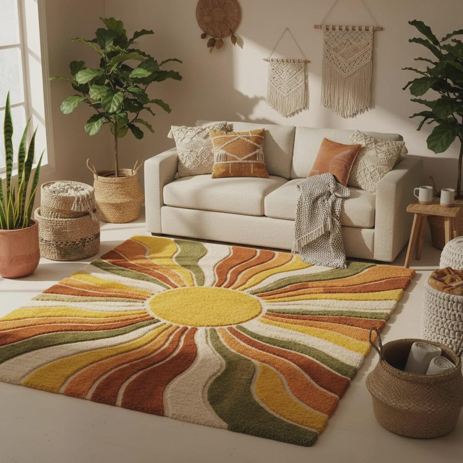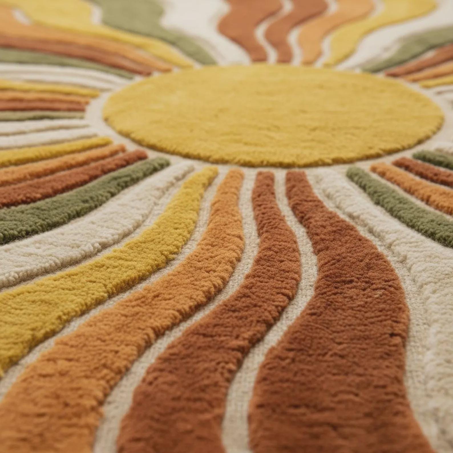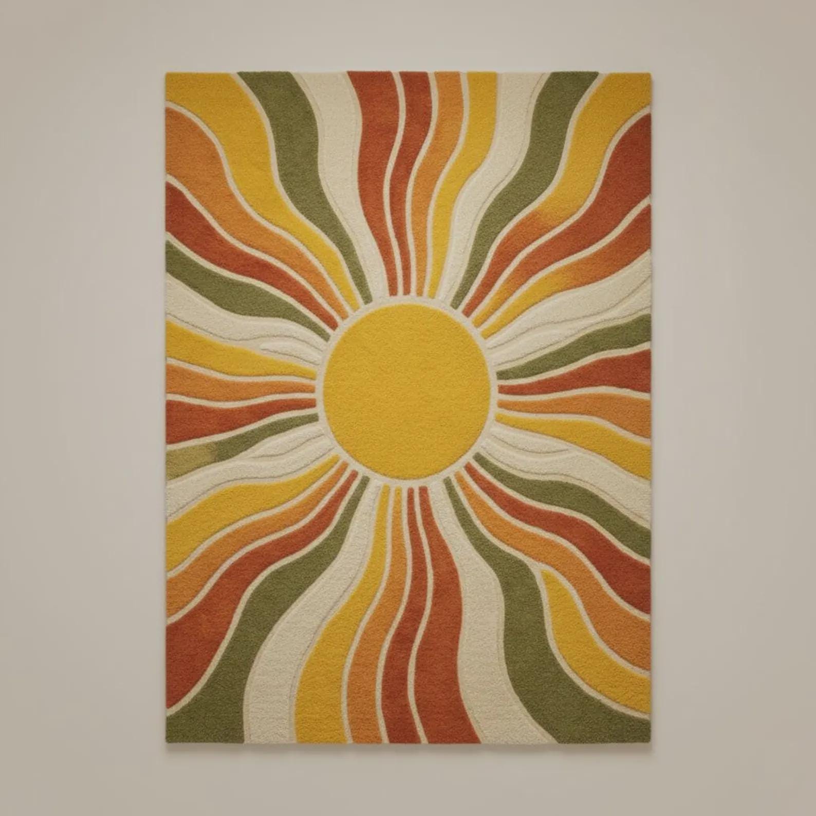 Sunburst Boho Wool Area Rug Mid Century Living Room-kids room, dining room rug.