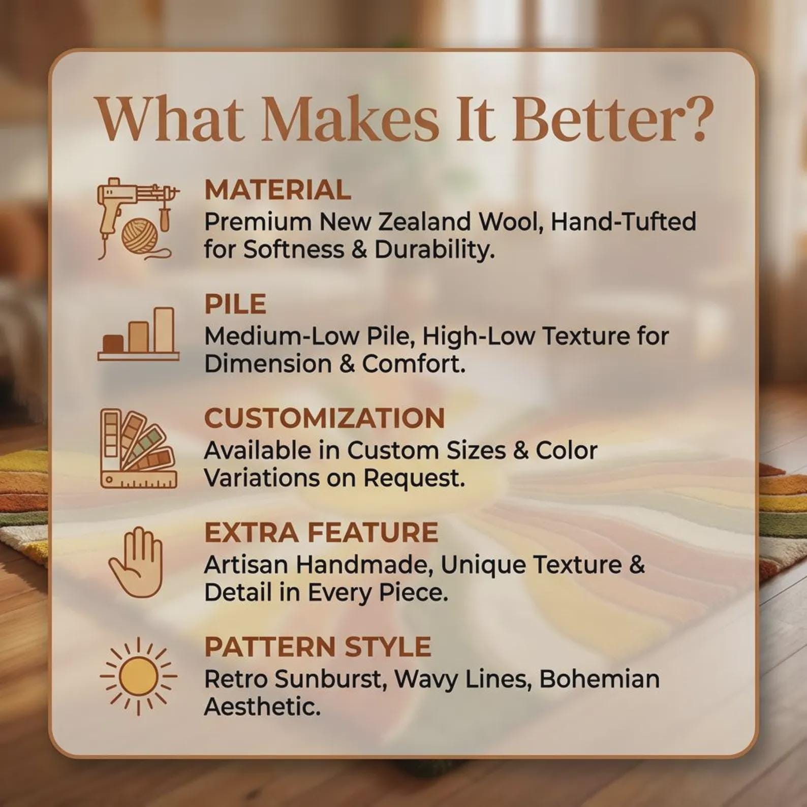 Bring warmth, movement, and retro character into your space with this mid-century modern shag rug, designed to instantly transform any room into a cozy, design-forward retreat.